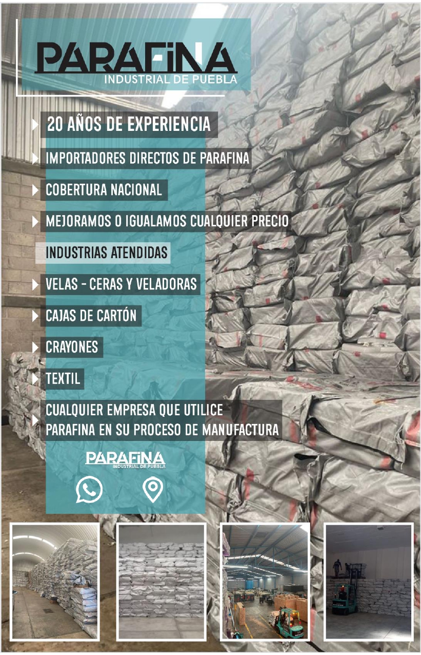 - Versatilidad Industrial: Suministramos parafina para una amplia gama de industrias atendidas, incluyendo la fabricación de velas, ceras, veladoras, cajas de cartón, crayones y textil, así como para cualquier empresa que utilice parafina en su proceso de manufactura.
